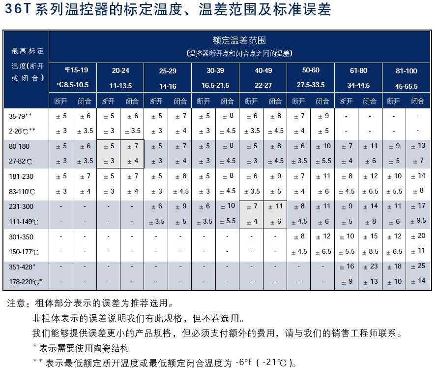 Therm-O-Disc”热敏碟公司制造的36T系列温度控制器,采用0.5英寸双金属片,性能可靠,结构紧凑,功能齐全,价格低廉。瞬动式双金属片采用独特设计,能提供高速的触点断开,并拥有极长的使用寿命,触点容量为AC120V 15A;AC250V 10A。我们将提供各种规格的接线端子和安装构件,客户能更灵活地设计和选择自己需要的产品。优秀的质量,可靠的性能,低廉的价格,齐全的功能及全球认证机构的一致认证,使36T系列温控器迅速在全球温度控制应用领域占据了一席之地。